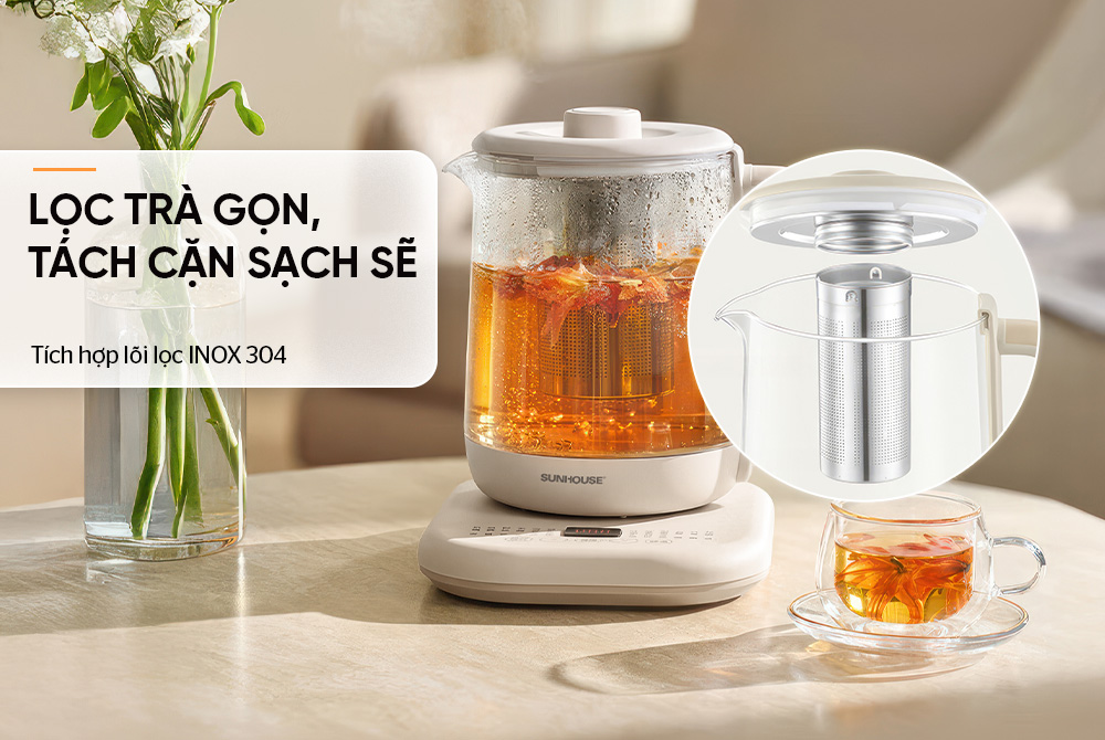 • Tích hợp lõi lọc INOX 304 - Lọc trà gọn, tách cặn sạch sẽ