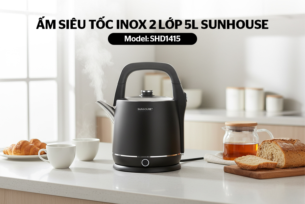 ẤM SIÊU TỐC INOX 2 LỚP 5L SUNHOUSE SHD1415