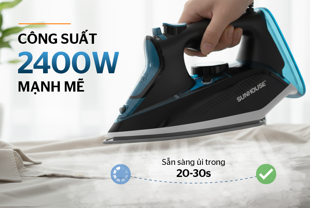 Công suất 2400W làm nóng nhanh, ủi hiệu quả