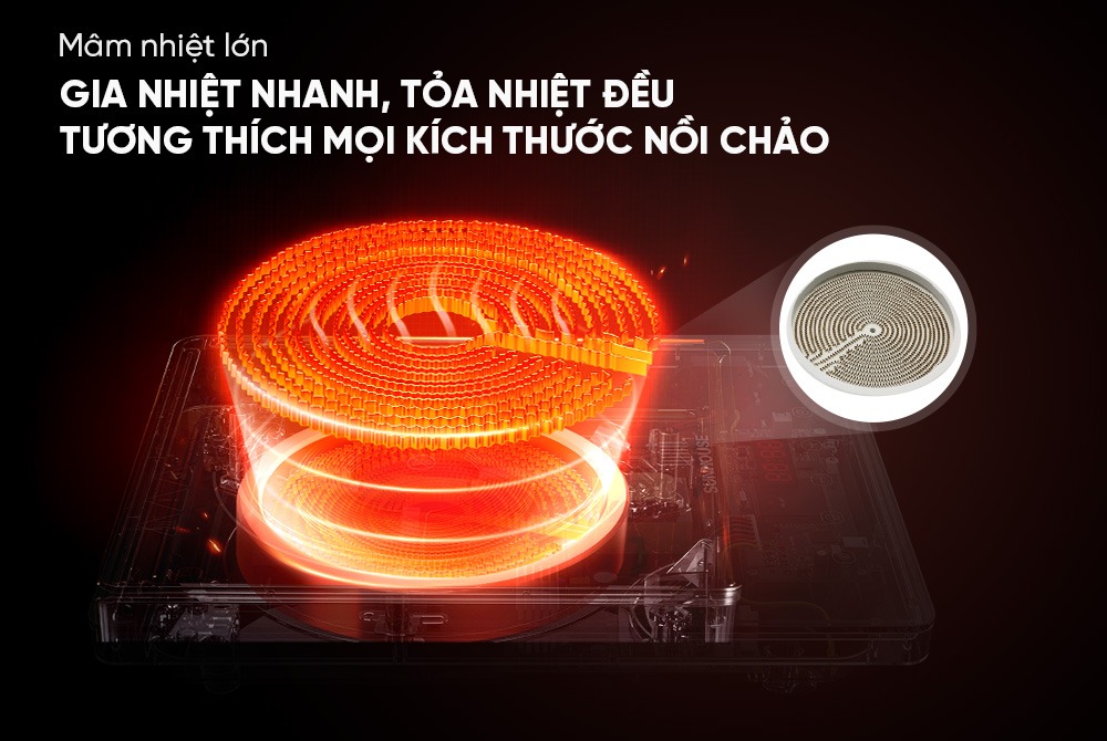 • Mâm nhiệt lớn giúp gia nhiệt nhanh, tỏa nhiệt đều