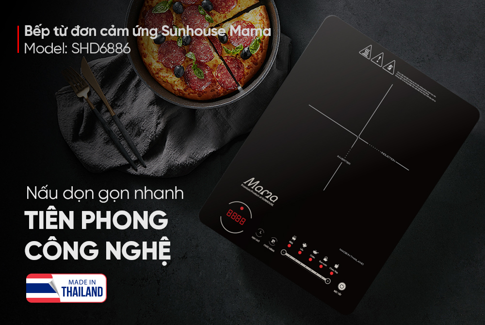 Nấu nhanh – Giữ nhiệt tốt – Dễ vệ sinh – Tiên phong công nghệ, bếp từ đơn cảm ứng SUNHOUSE SHD6886 mang đến trải nghiệm trọn vẹn cho mọi bữa ăn vui bên người thân.