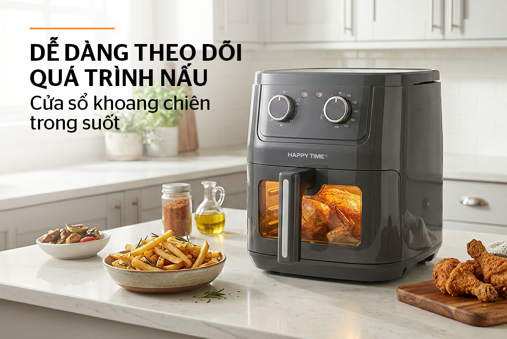 • Cửa sổ khoang chiên trong suốt, quan sát quá trình nấu tiện lợi