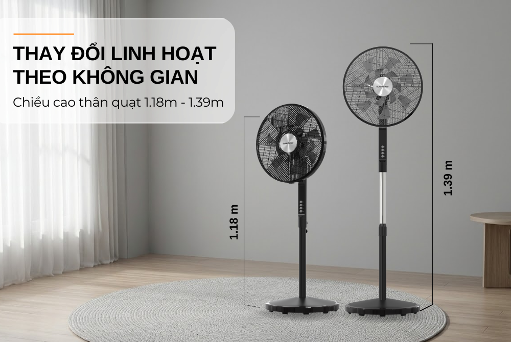• Chiều cao thân quạt linh hoạt 1.18m - 1.4m