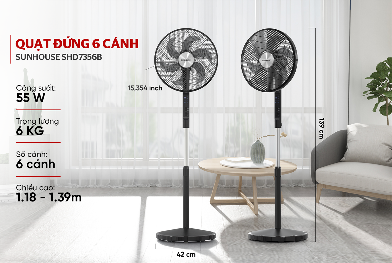 QUẠT ĐỨNG 6 CÁNH SUNHOUSE SHD7356B