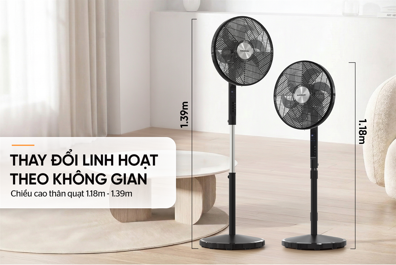 • Chiều cao thân quạt linh hoạt 1.18m -1.39m