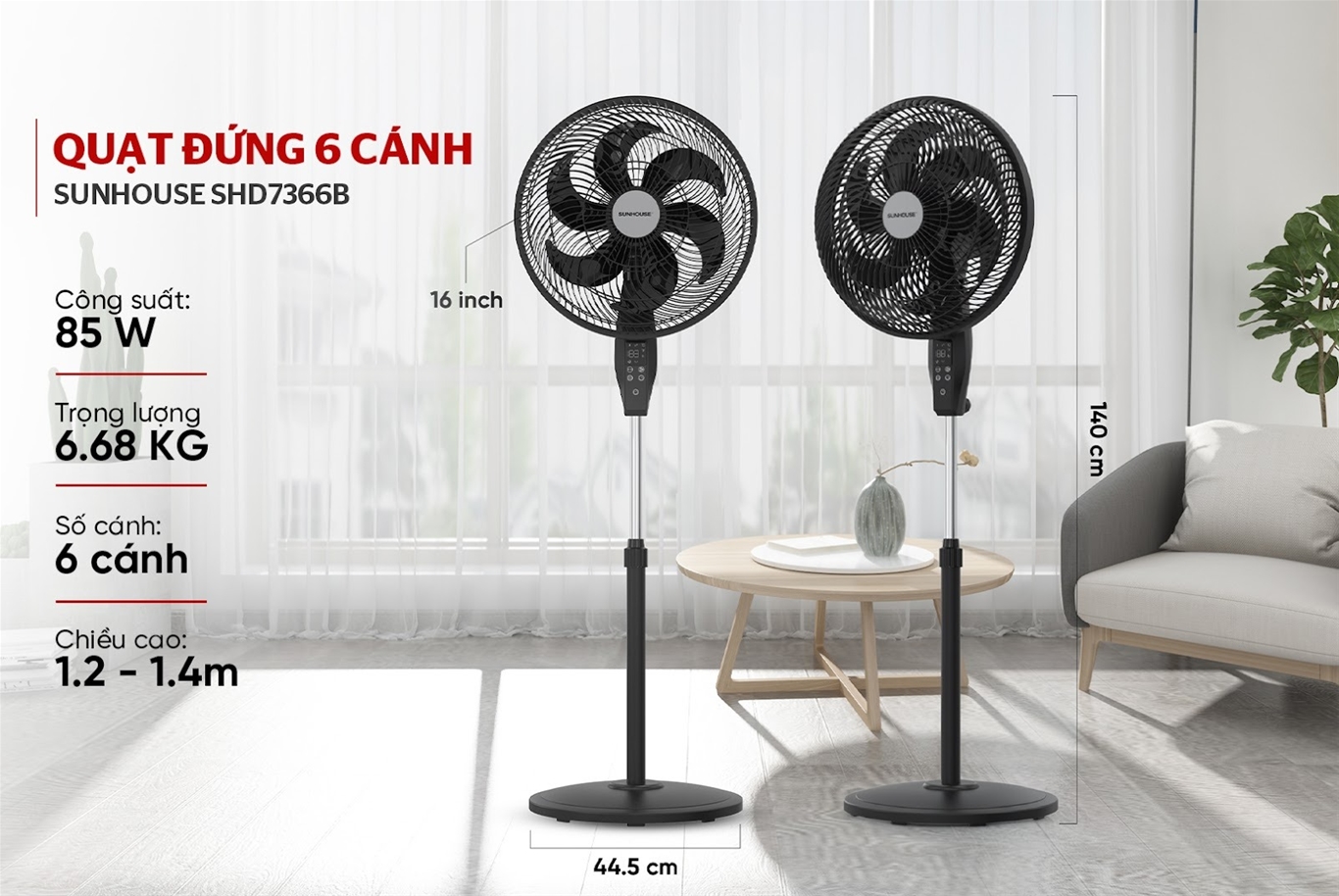 QUẠT ĐỨNG 6 CÁNH SUNHOUSE SHD7366B