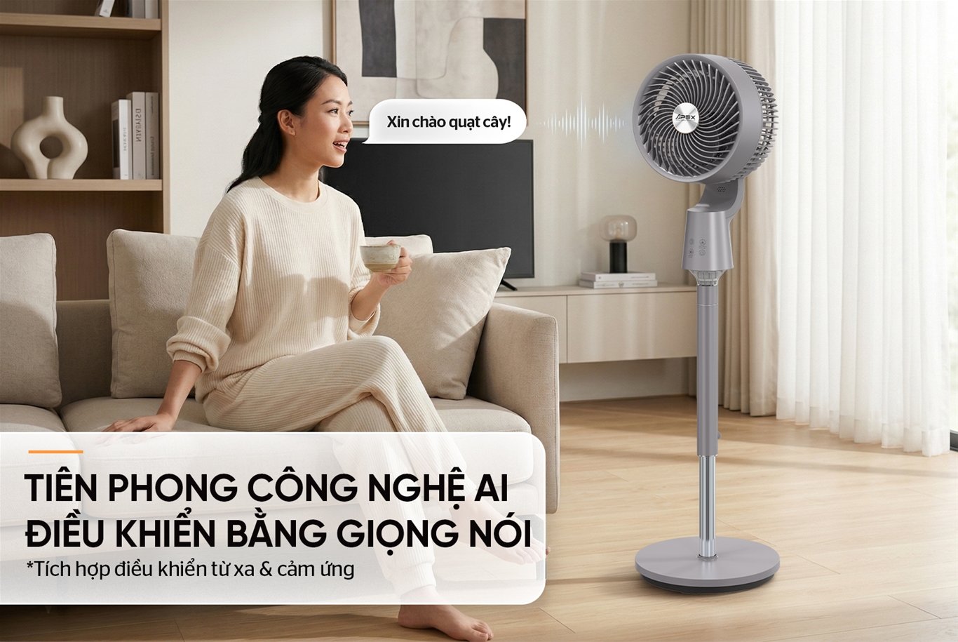 Quạt đứng thông minh SUNHOUSE APEX APF7321GV được tích hợp công nghệ AI cho phép nhận lệnh và điều khiển bằng giọng nói. Chỉ với một câu lệnh đơn giản, người dùng có thể bật/tắt quạt, điều chỉnh tốc độ gió hay chế độ hoạt động mà không cần lại gần thiết bị.