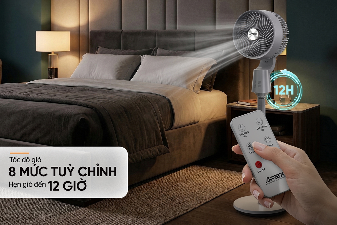 Tốc độ gió 8 mức tùy chỉnh - Hẹn giờ lên đến 12 giờ
