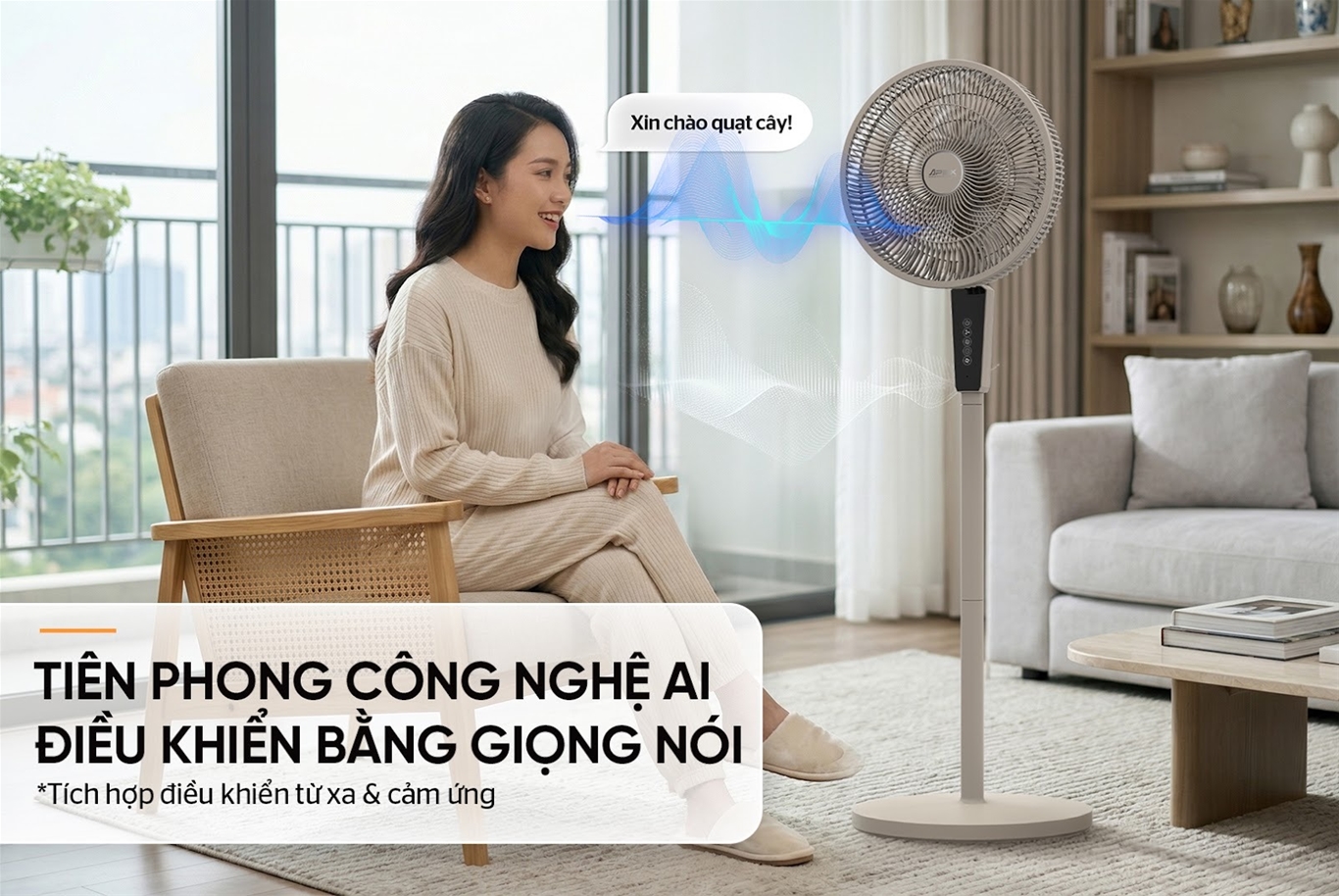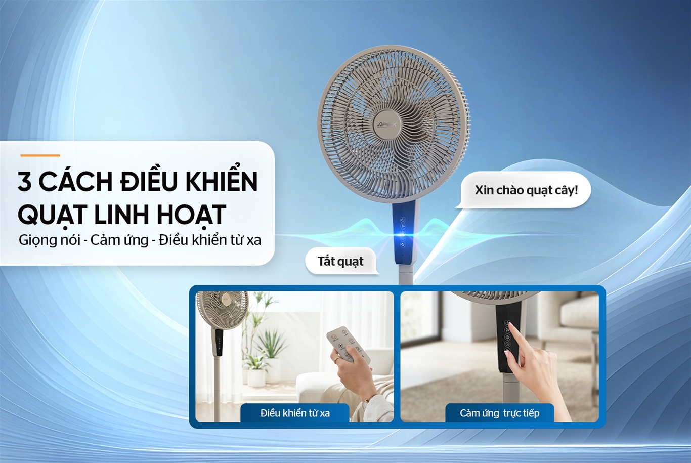 Ngoài điều khiển bằng giọng nói, quạt còn được trang bị bảng điều khiển cảm ứng nhạy bén cùng remote điều khiển từ xa, giúp người dùng dễ dàng tùy chỉnh các chế độ hoạt động theo nhu cầu. Nhờ đó, việc điều chỉnh tốc độ gió, chuyển chế độ hoặc cài đặt các chức năng trở nên thuận tiện hơn, phù hợp với nhiều tình huống sử dụng trong gia đình.