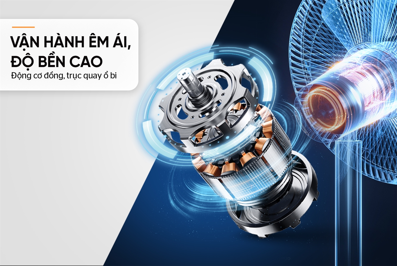 Động cơ đồng, trục quay ổ bi - Vận hành êm ái, bền bỉ vượt trội