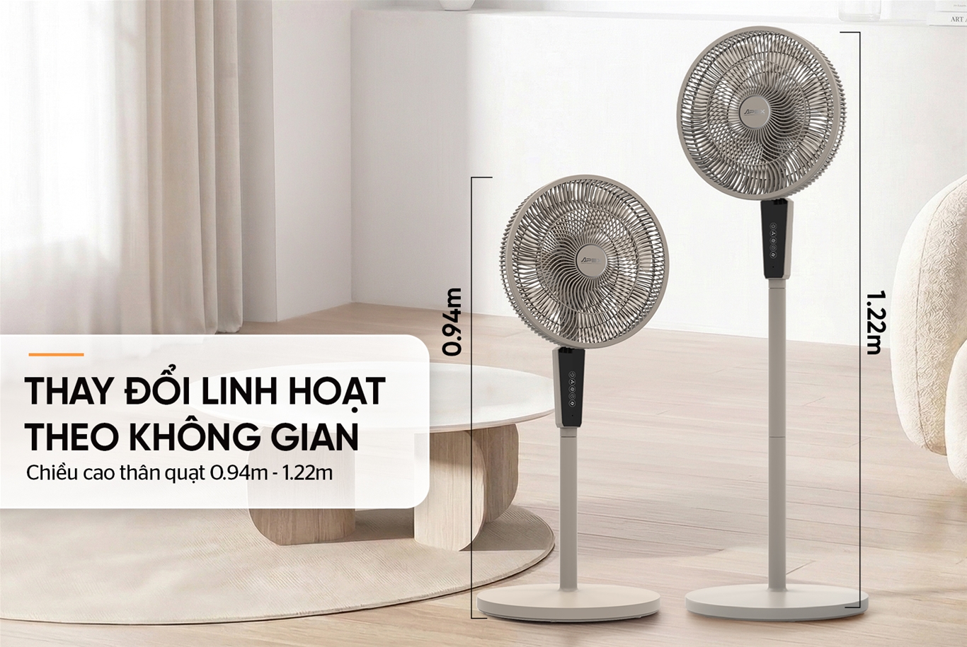 Chiều cao thân quạt 0.94 - 1.22m - Thay đổi linh hoạt theo không gian