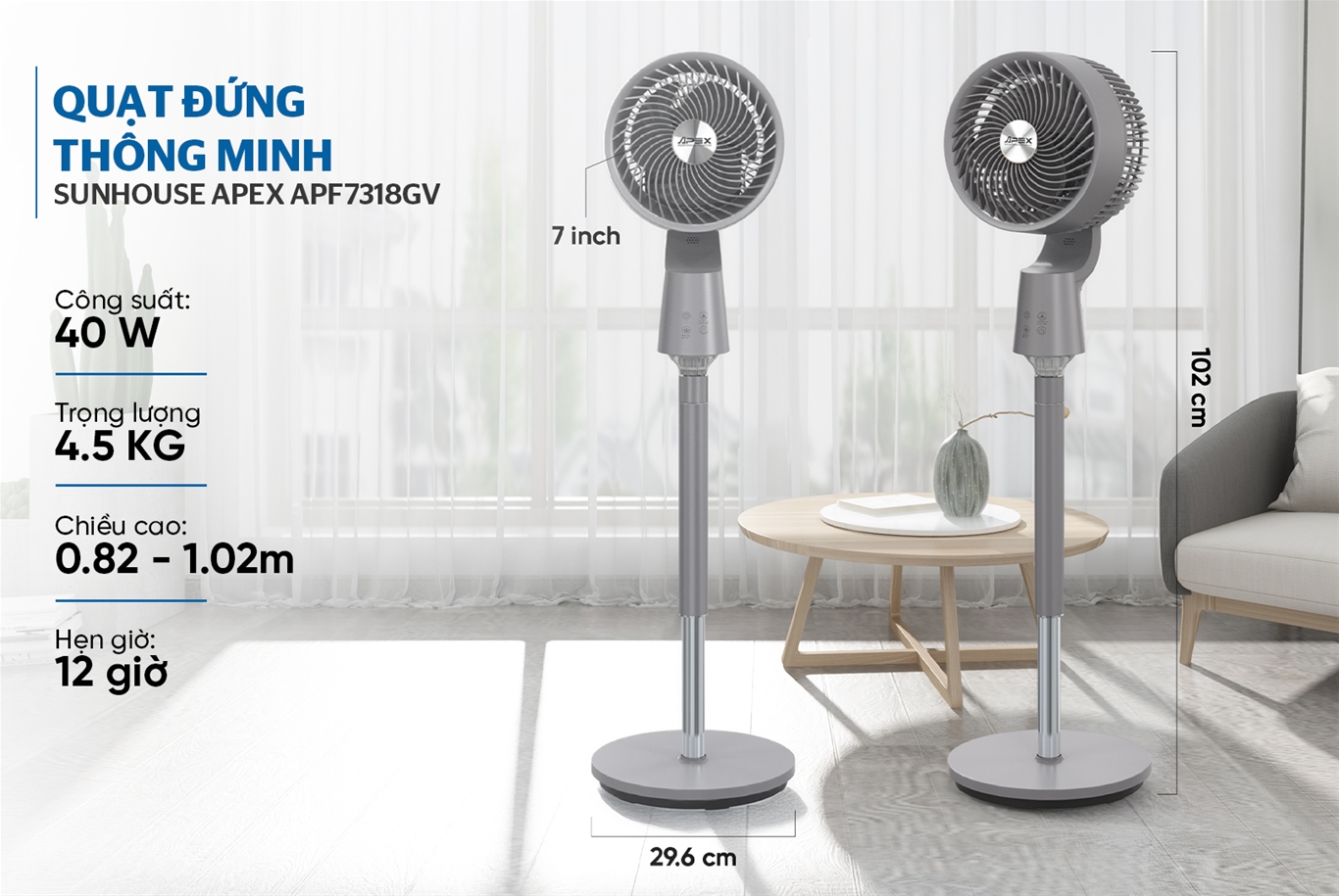 QUẠT ĐỨNG THÔNG MINH SUNHOUSE APEX APF7318GV