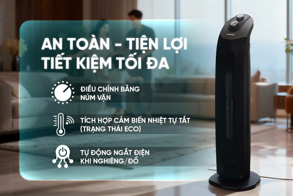 Sưởi điện ceramic SUNHOUSE SHD7071 có hai chế độ an toàn đáng chú ý: