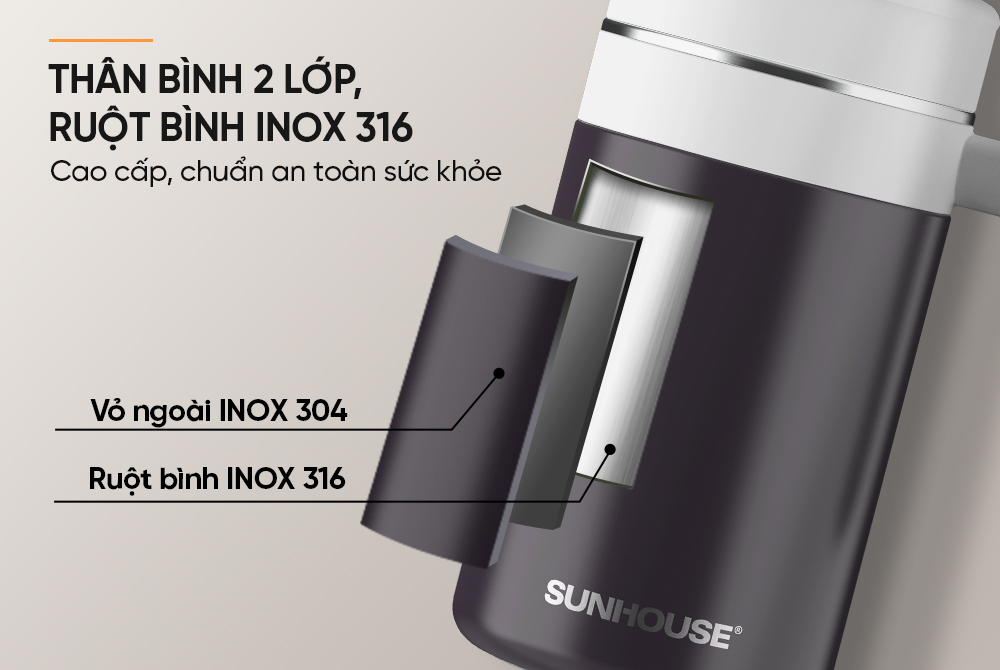 • Lòng bình INOX 316 cao cấp, chuẩn an toàn sức khỏe