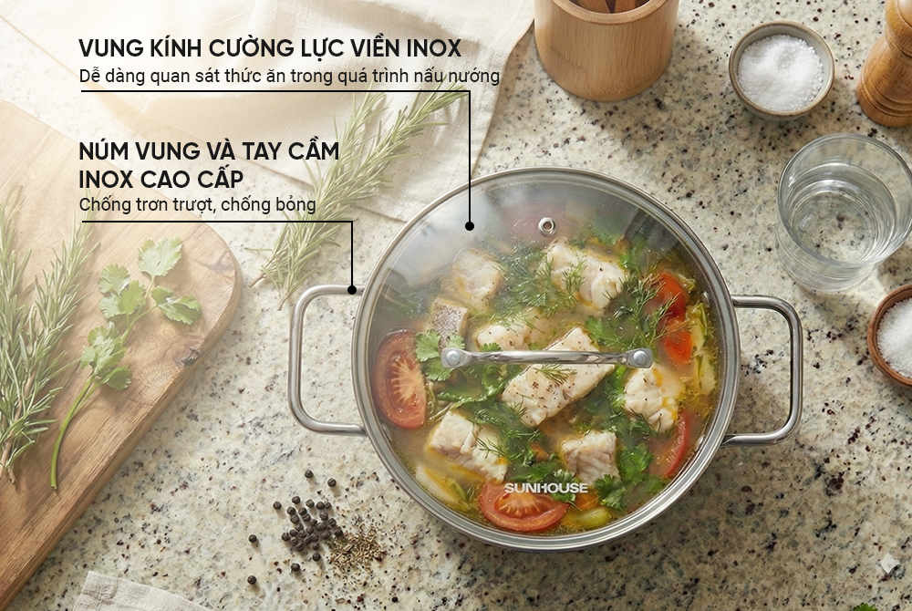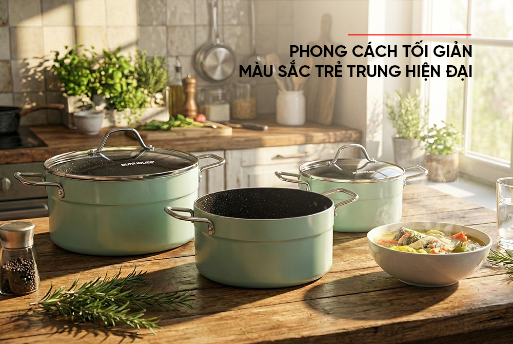 • Bộ 3 nồi đa năng, giúp linh hoạt chế biến từ món chiên, xào đến nấu, ninh, đáp ứng đa dạng nhu cầu nấu nướng