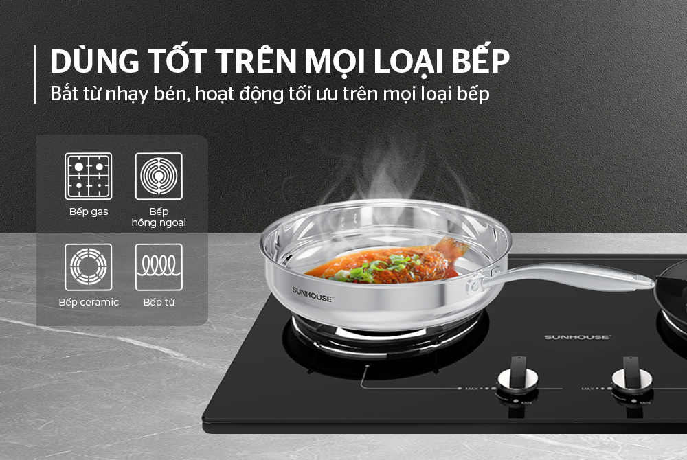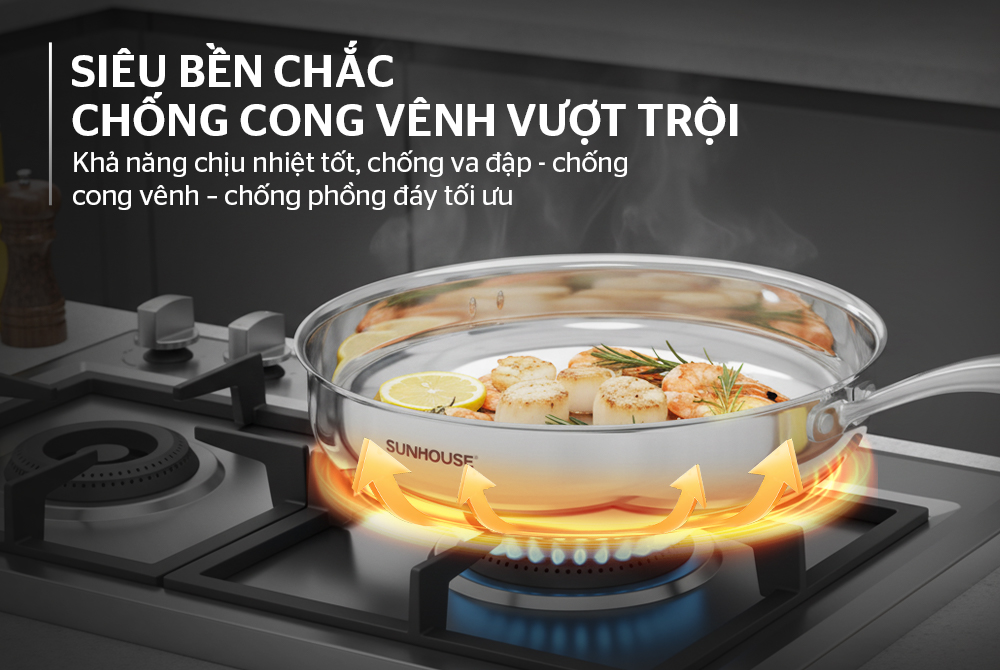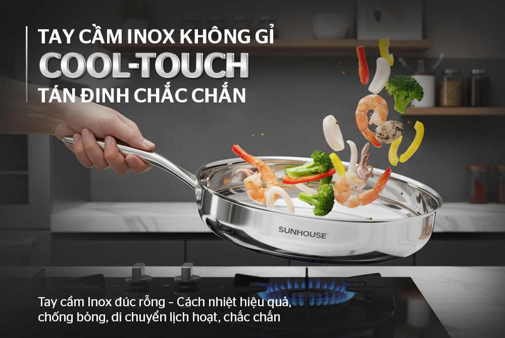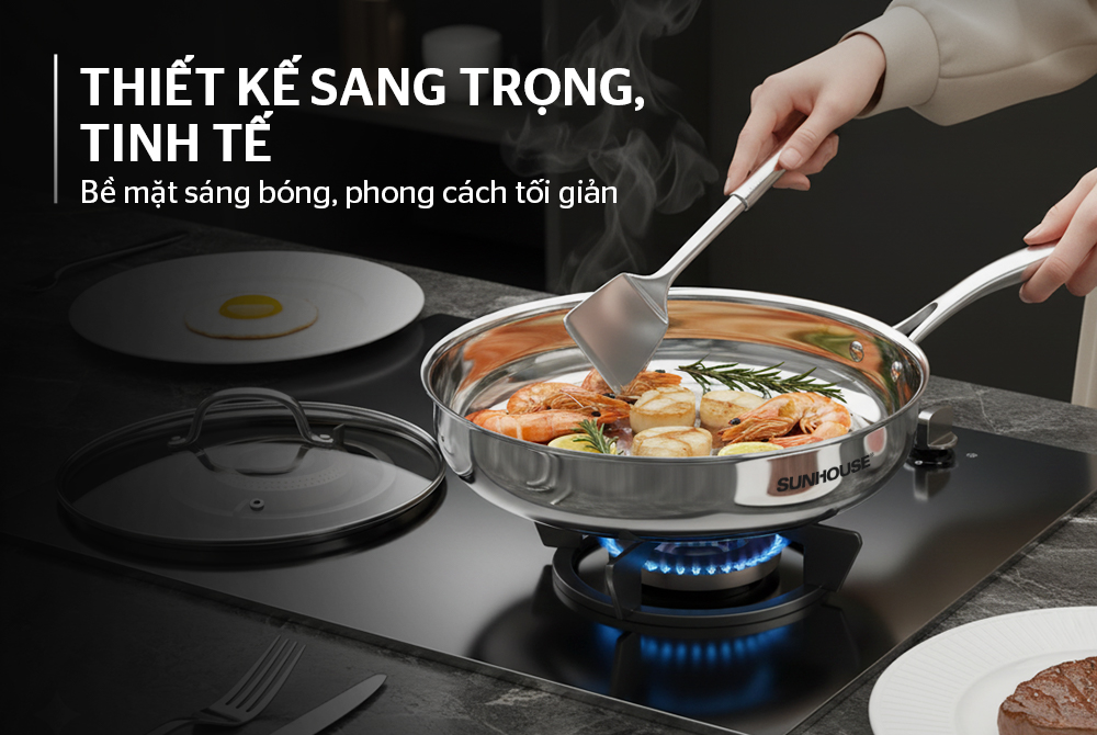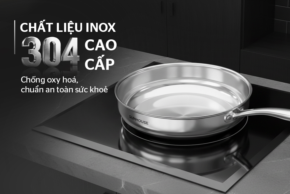 Đặc biệt, để tối ưu hiệu quả chống dính tự nhiên và giúp các món chiên xào ngon chuẩn vị, bạn có thể tham khảo cách “tôi chảo” đơn giản với Chảo sâu inox liền khối SUNHOUSE Healthy. Thao tác đúng cách ngay từ lần sử dụng đầu tiên sẽ giúp hình thành lớp chống dính tự nhiên, hạn chế bám dính thực phẩm và nâng cao độ bền cho sản phẩm.
