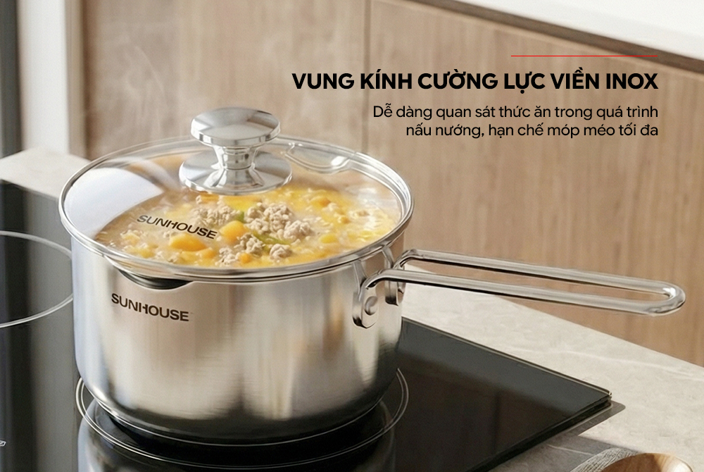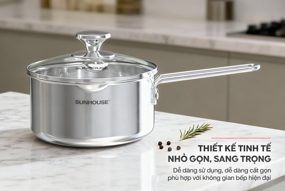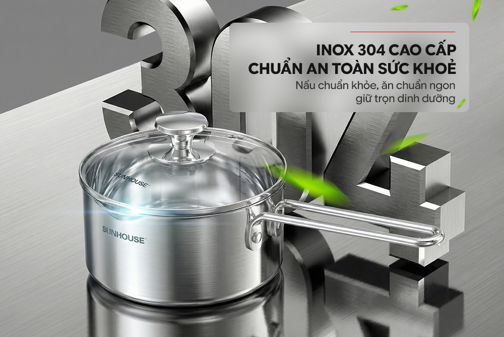 Quánh inox 304 liền đáy Sunhouse Healthy SHG304-16 kết hợp chất liệu inox cao cấp với cấu trúc 3 lớp dẫn nhiệt tối ưu, mang đến trải nghiệm nấu nướng an toàn – bền bỉ – chuẩn vị cho mọi gia đình. Lòng quánh inox 304 an toàn cho sức khỏe, giữ nguyên hương vị thực phẩm, trong khi lõi nhôm và lớp ngoài inox 430 hỗ trợ truyền nhiệt nhanh, tỏa nhiệt đều và tương thích mọi loại bếp. Thân quánh dày 1.8mm chắc chắn, chống cong vênh hiệu quả, kết hợp quai và núm inox bền chắc, chống nóng, giúp thao tác an toàn và thuận tiện. Bề mặt sáng bóng, dễ vệ sinh, cùng thiết kế tinh tế mang đến vẻ hiện đại và tiện nghi cho căn bếp gia đình.