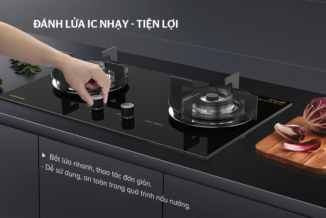 Bếp gas âm kính SUNHOUSE SHB62010 sử dụng hệ thống đánh lửa IC bằng pin, cho khả năng khởi động nhanh chỉ với một thao tác xoay núm. Cơ chế đánh lửa ổn định, độ nhạy cao, giúp bắt lửa nhanh, hạn chế rò rỉ gas và đảm bảo an toàn tuyệt đối khi sử dụng. Bộ đánh lửa dễ dàng thay pin, mang lại sự thuận tiện và an tâm tối đa cho người dùng trong suốt quá trình nấu nướng hằng ngày.
