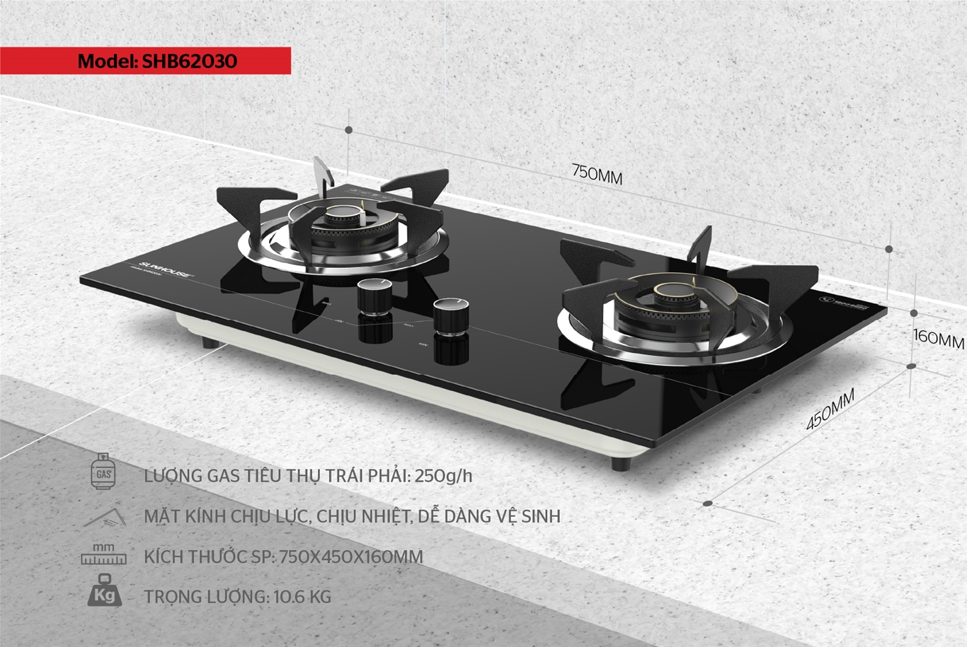 Hệ thống đầu đốt của bếp gas âm kính SUNHOUSE SHB62030 được thiết kế tối ưu, tạo ngọn lửa xanh mạnh mẽ và tỏa nhiệt đều quanh đáy nồi, giúp thực phẩm chín nhanh, chín đều và hạn chế bám muội, không làm đen đáy nồi. Nhờ hiệu suất đốt cao, bếp tiết kiệm gas tối đa, đồng thời vận hành ổn định, an toàn và bền bỉ theo thời gian. Với kết cấu vững chắc cùng khả năng hoạt động hiệu quả, đâylà lựa chọn hoàn hảo cho mọi căn bếp Việt – vừa sang trọng, vừa tiết kiệm, vừa tiện lợi trong từng bữa ăn hàng ngày.