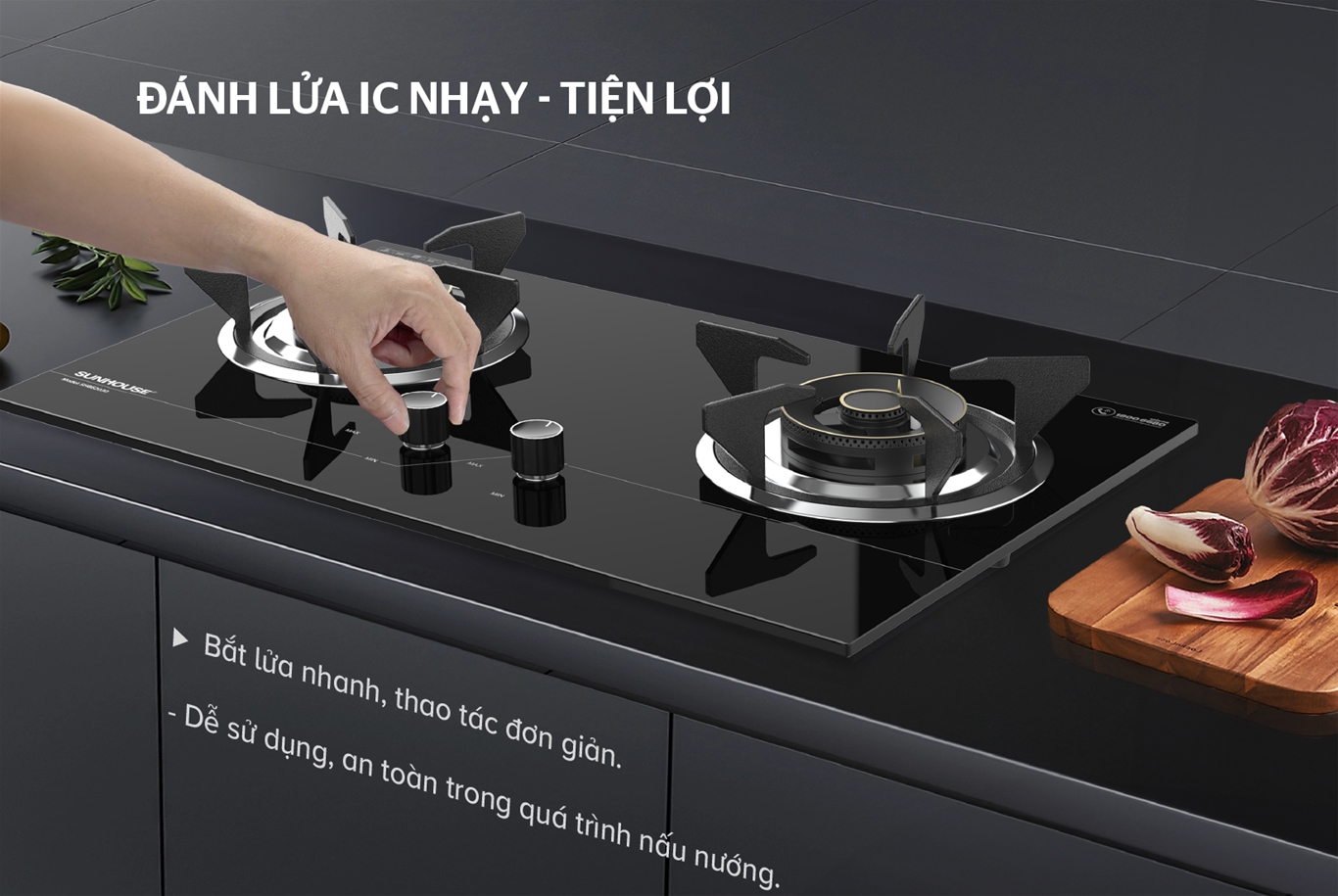 Bếp gas âm kính SUNHOUSE SHB62030 được trang bị hệ thống đánh lửa IC sử dụng pin, cho khả năng bắt lửa nhanh, ổn định và cực kỳ an toàn. Chỉ với một thao tác xoay núm nhẹ, bếp khởi động tức thì, không lo rò rỉ gas hay tốn nhiều thời gian.