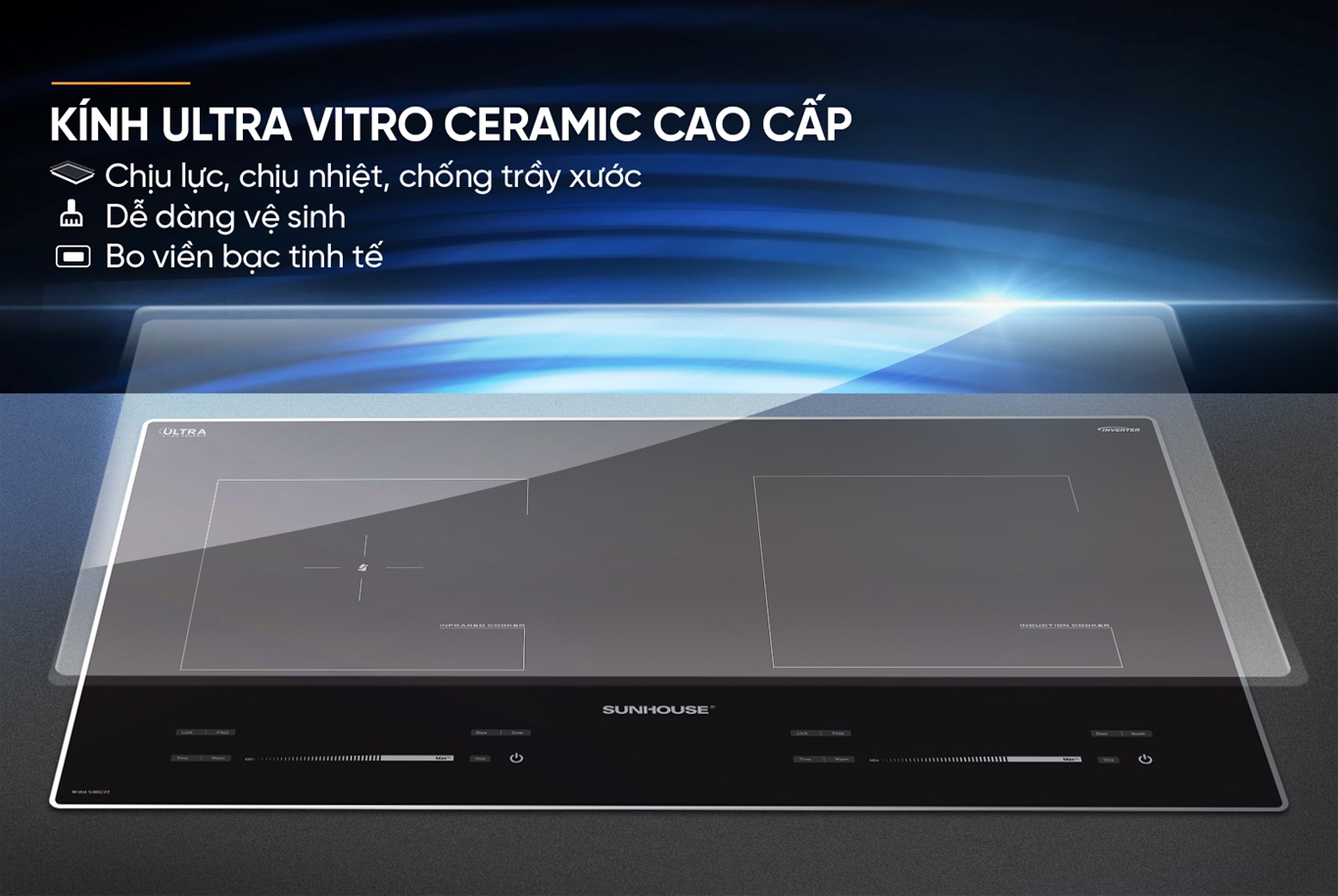 • Mặt kính cao cấp Ultra Vitro Ceramic bo viền sang trọng