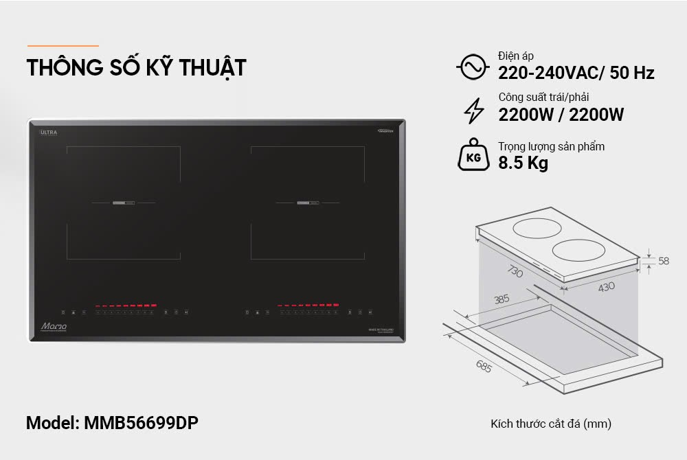 Bếp đôi điện từ Sunhouse Mama MMB56699DP không chỉ có vẻ ngoài sang trọng, tinh tế mà còn có nhiều tính năng hiện đại, thông minh. Bếp được trang bị mặt kính Ultra Vitro Ceramic cao cấp bền bỉ, nhẵn bóng và tích hợp nhiều chế độ thông minh: Booster nấu nhanh và Slow Cook nấu chậm, mang lại sự linh hoạt trong từng bữa ăn nói riêng, và lối sống lành mạnh cho gia đình nói chung.