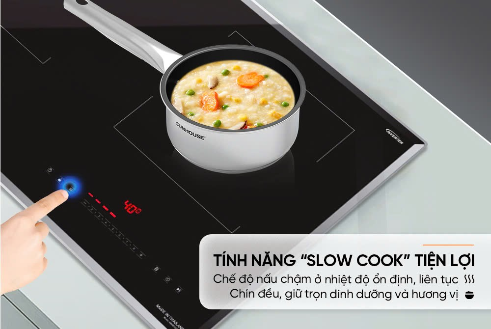 Các mónninh, hầm, kho chắc chắn sẽ rất phù hợp với tính năng Slow Cook của bếp đôi điện từ Sunhouse Mama MMB56699DP. Nhờ duy trì nhiệt độ ổn định ở mức thấp trong suốt quá trình nấu, tránh đóng ngắt nhiệt - thành phẩm sẽ trở nên mềm ngọt, thơm ngon và ngấm gia vị, giữ được hương vị tự nhiên vốn có.