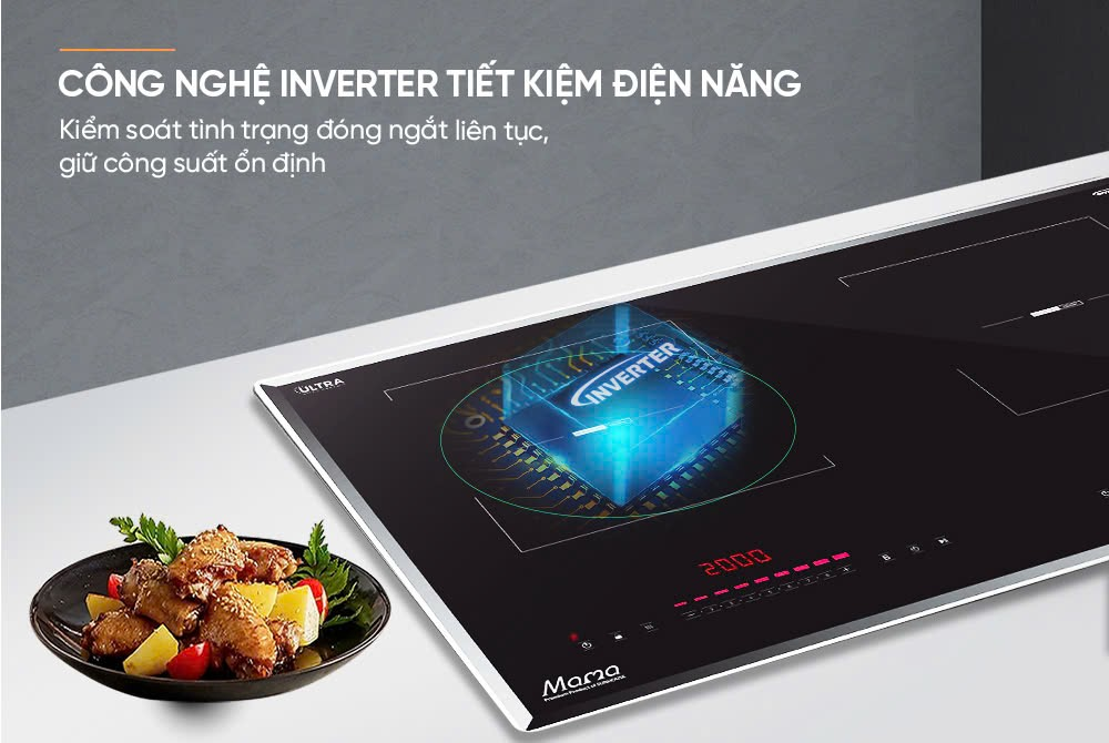 Công nghệ Inverter giúp bếpduy trì công suất ổn định, không bị đóng ngắt liên tục giúp tiết kiệm điện năng tối đa, bếp vận hành êm ái, đảm bảo không gian yên tĩnh cho căn bếp gia đình.