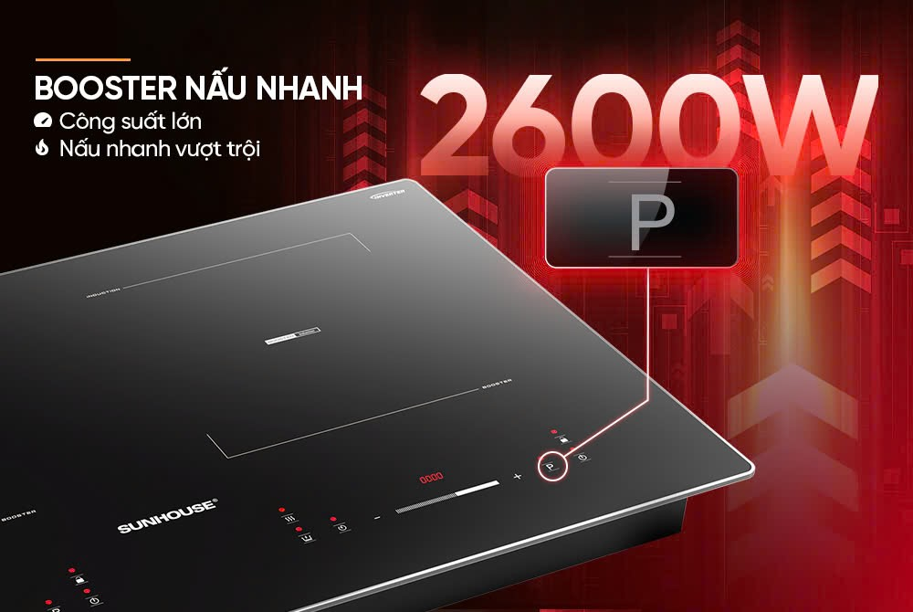 Chế độ nấu nhanh Booster là lựa chọn tuyệt vời cho những ngày bận rộn, giúp đẩy công suất lên mức cao nhất 2600W - chỉ với một nút chạm. Thay vì phải chờ đợi, bạn có thể đun sôi nước hoặc làm chín thực phẩm chỉ trong vài phút. Tính năng này giúp tiết kiệm thời gian đáng kể, hỗ trợ việc chuẩn bị bữa ăn nhanh chóng và thảnh thơi hơn.