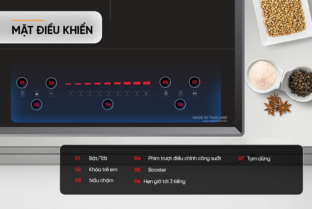 Chế độ tạm dừng: Cho phép tạm ngưng hoạt động của bếp nhưng vẫn giữ nguyên mức nhiệt và cài đặt, giúp người dùng dễ dàng tiếp tục nấu chỉ với một thao tác.