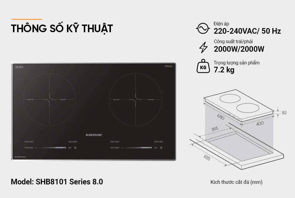 BẾP ĐÔI ĐIỆN TỪ SUNHOUSE SHB8101 SERIES 8.0: KIỆT TÁC TIỆN NGHI CHO CĂN BẾP HIỆN ĐẠI