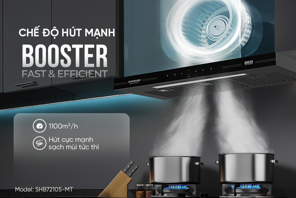 • Chế độ Booster - Hút cực mạnh, sạch mùi tức thì