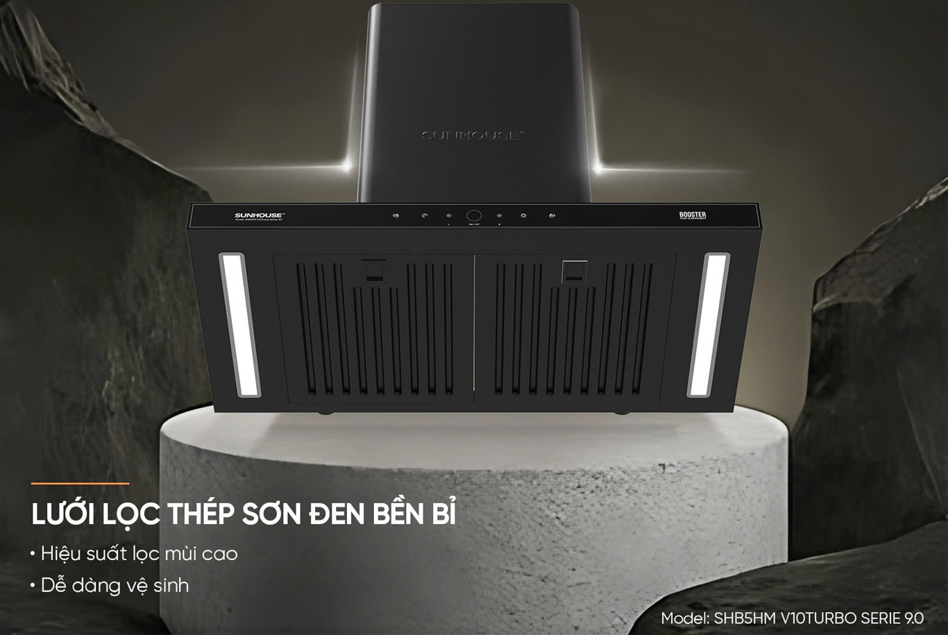 Có máy hút mùi CHỮ T SUNHOUSE SHB5HM V10TURBO SERIE 9.0, nỗi lo về khói mùi khi nấu nướng sẽ hoàn toàn biến mất. Nổi bật với chế độ Booster hút mạnh bền bỉ, máy có thể tăng công suất hút lên mức tối đa 1400m3/h chỉ trong nháy mắt. Dù là mùi tanh nồng của hải sản, khói bếp dày đặc hay mùi thức ăn bám lâu ngày, tất cả đều được xử lý gọn gàng, trả lại bầu không gian thoáng đãng và thơm tho cho gia đình ngay tức thì.