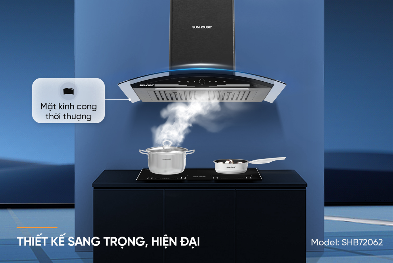 Máy hút mùi kính cong SUNHOUSE SHB72062 có công suất 750m³ /h, 3 tốc độ hút cho hiệu quả hút mùi tốt ưu lại tiết kiệm điện năng. Mùi dầu mỡ hay các mùi khó chịu khác trong quá trình nấu nướng sẽ nhanh chóng bị hút sạch, không ám mùi lên quần áo, các vật dụng nhà bếp hay các không gian liền kề khác (điển hình như thiết kế căn hộ chung cư).