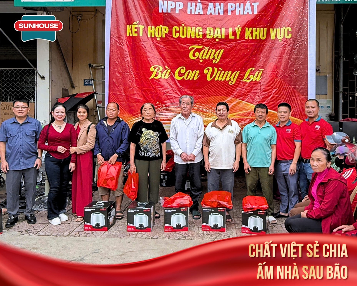 Hành trình sẻ chia này không chỉ mang lại những món quà thiết thực giúp bà con ổn định sinh hoạt sau thiên tai, mà còn thể hiện trách nhiệm xã hội và tinh thần tương thân tương ái, những giá trị mà SUNHOUSE luôn gìn giữ trong suốt hành trình phát triển.