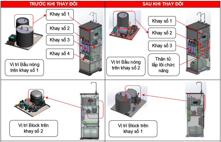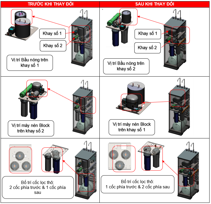 THAY ĐỔI LAYOUT LẮP RÁP LÕI LỌC - MÁY LỌC NƯỚC RO SUNHOUSE
