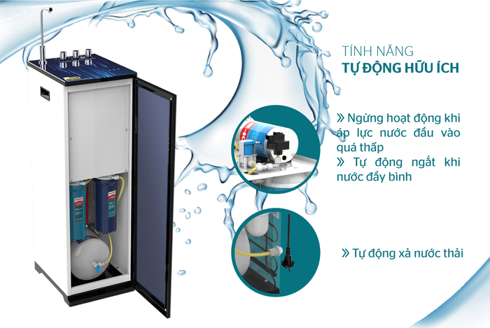 Máy lọc nước được trang bị nhiều tính năng tự động hữu ích và tiện lợi giúp tiết kiệm điện năng cực tốt