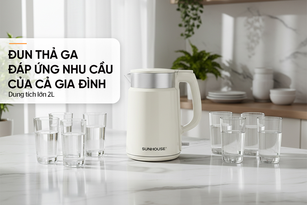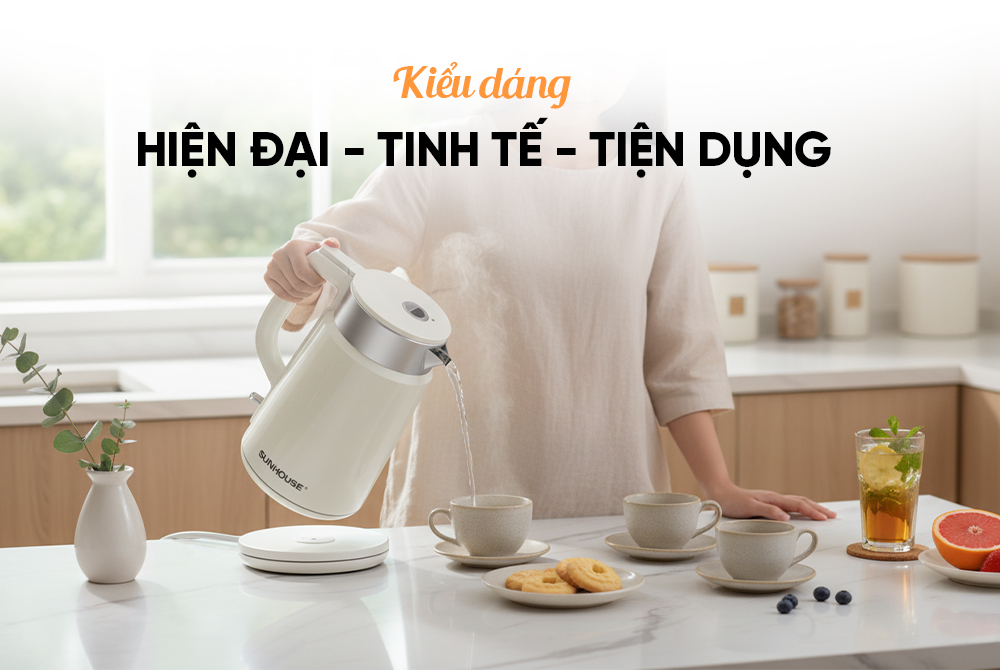 Không chỉ là sản phẩm gia dụng, Ấm siêu tốc Inox 2 lớp 2L SUNHOUSE SHD1387 còn là một điểm nhấn thẩm mỹ cho gian bếp hiện đại.