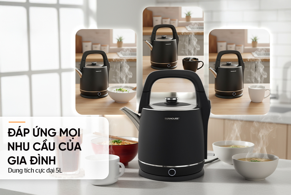 • Dung tích cực đại 5L, đáp ứng nhu cầu của cả gia đình