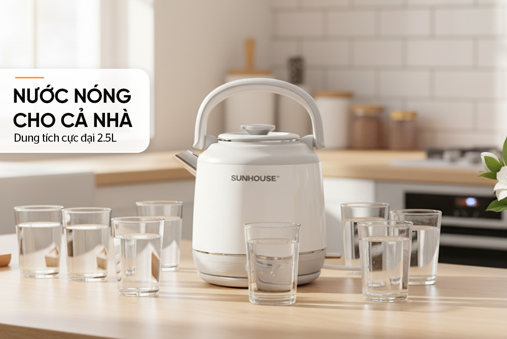 Với thiết kế hiện đại, chất liệu cao cấp, hiệu suất đun sôi nhanh, và tính năng an toàn thông minh, Ấm siêu tốc Inox giữ nhiệt 2.5L Sunhouse SHD1392 là lựa chọn lý tưởng cho mọi gia đình, mang đến cuộc sống tiện nghi, tiết kiệm và an tâm mỗi ngày.