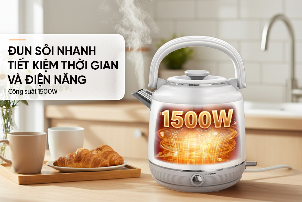 CÔNG SUẤT 1500W – ĐUN SÔI NHANH, TIẾT KIỆM THỜI GIAN
