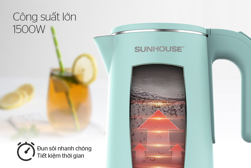 Nổi bật với thiết kế hiện đại, tinh tế, màu sắc trang nhã, ấm siêu tốc inox 2 lớp 1.8L SUNHOUSE SHD1351 là sự lựa chọn phù hợp cho những căn bếp hiện đại. Ấm có dung tích lớn 1.8 lít cùng công suất hoạt động cao (1500W) giúp việc đun nước nhanh chóng hơn, tiết kiệm thời gian và điện năng tối đa. Không chỉ là một thiết bị nhà bếp, ấm siêu tốc SUNHOUSE SHD1351 còn là một vật trang trí tinh tế cho căn bếp, thể hiện mắt thẩm mỹ của chủ nhà.
