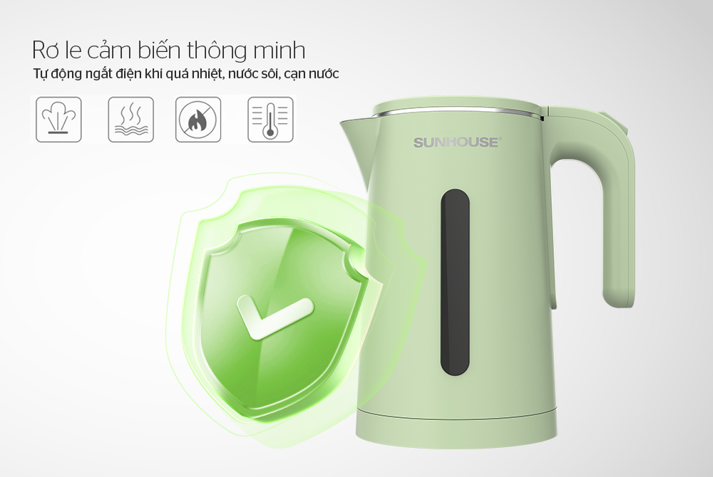 • Tự động tắt khi nước sôi, cạn nước hoặc quá nhiệt
