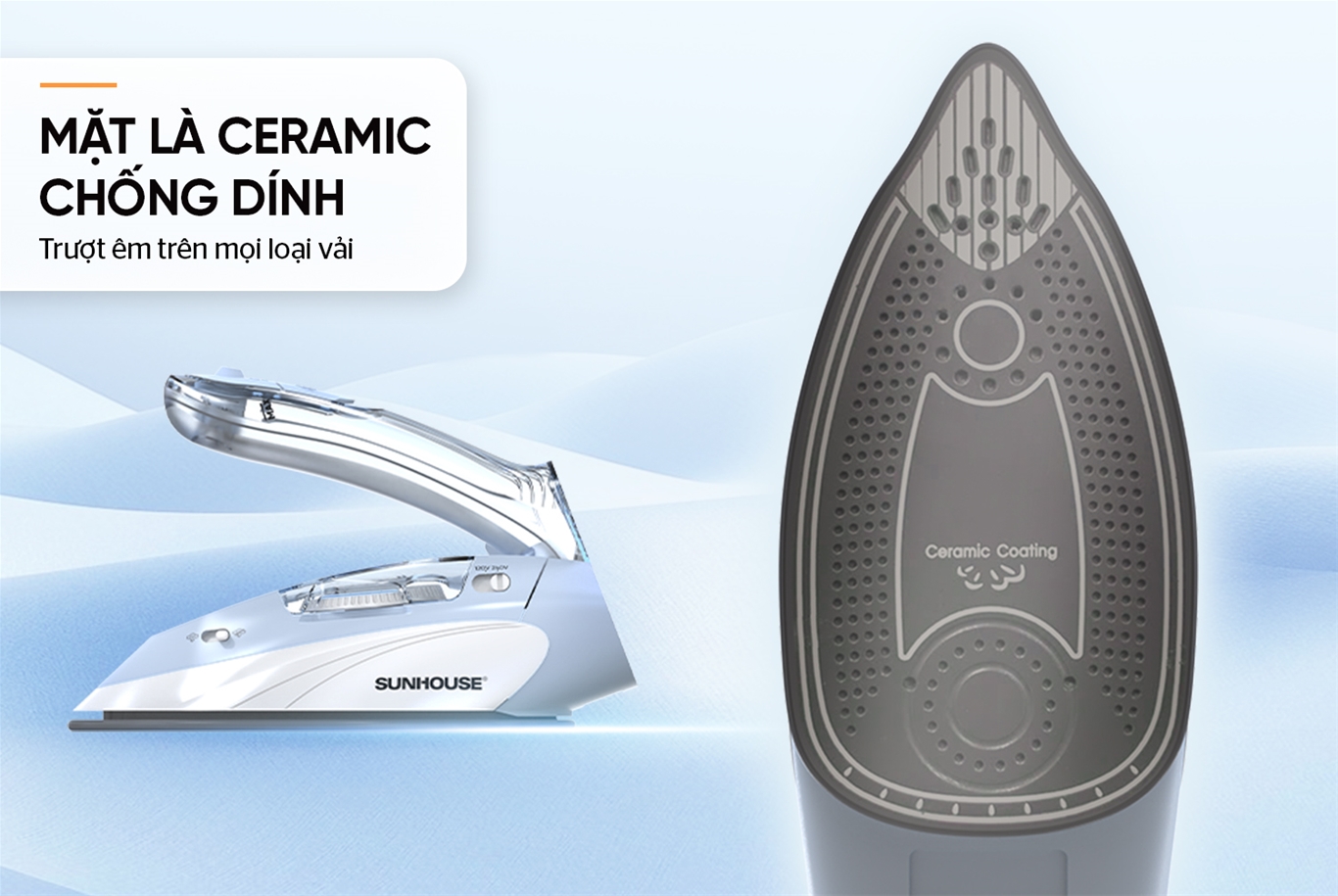 Mặt là Ceramic chống dính - Lướt êm trên mọi loại vải