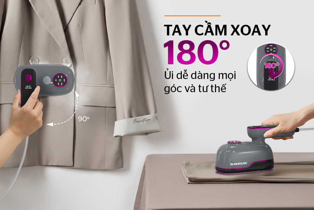 Tay cầm xoay 180° – Ủi dễ dàng mọi góc và tư thế