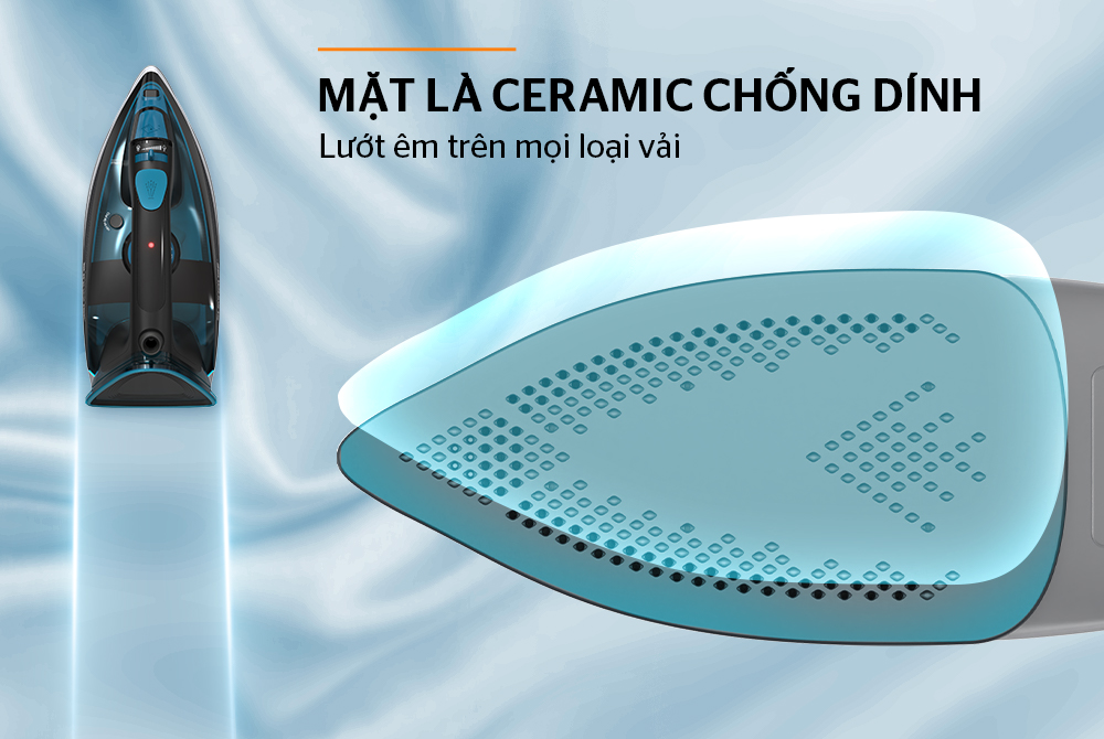 Mặt đế ceramic chống dính, lướt êm trên vải