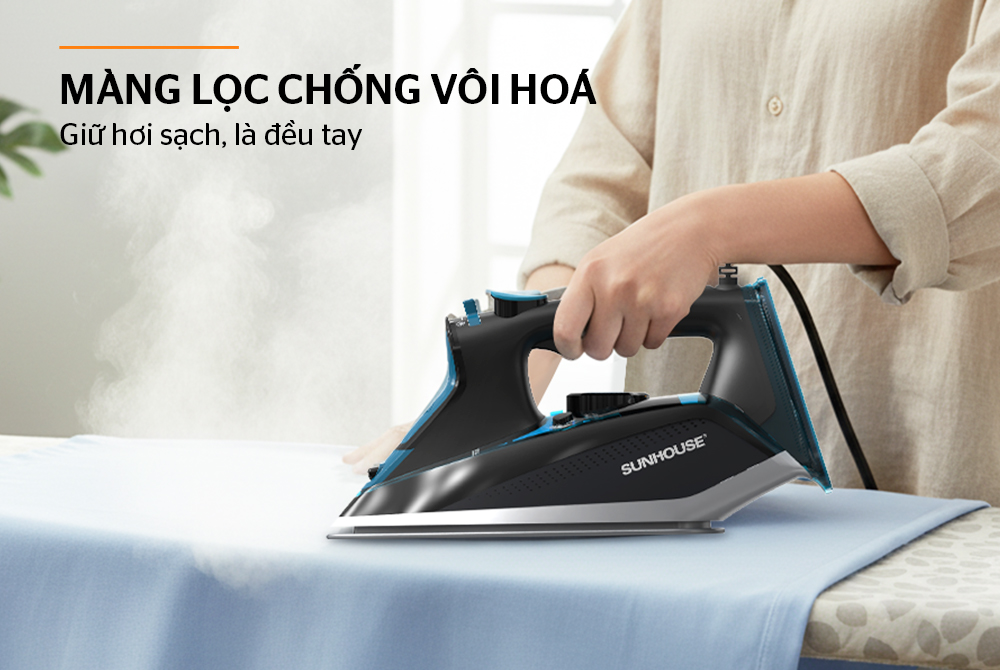 Bàn là hơi Sunhouse Mama SHD2071 được tích hợp màng lọc chống vôi hóa, giúp lọc cặn trong nước, giữ hơi nước sạch và ổn định trong suốt quá trình sử dụng. Nhờ đó, bàn là hạn chế tắc nghẽn và duy trì hiệu suất phun hơi lâu dài. Tính năng này giúp Bàn là hơi Sunhouse Mama SHD2071 vận hành bền bỉ hơn, đồng thời bảo vệ mặt đế và quần áo khỏi cặn bẩn do nước gây ra.