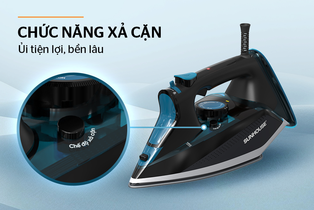 Bàn là hơi Sunhouse Mama SHD2071 được trang bị chức năng xả cặn tiện lợi, giúp loại bỏ cặn khoáng tích tụ bên trong sau thời gian dài sử dụng. Việc vệ sinh bàn là trở nên đơn giản và nhanh chóng hơn. Nhờ chức năng này, Bàn là hơi Sunhouse Mama SHD2071 duy trì khả năng tạo hơi ổn định, kéo dài tuổi thọ sản phẩm và đảm bảo hiệu quả ủi đồ lâu dài.