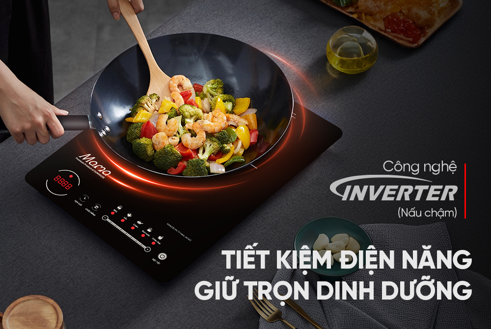 Bếp từ đơn cảm ứng SUNHOUSE SHD6886 được trang bị công nghệ Inverter (Nấu chậm) giúp duy trì mức nhiệt ổn định, hạn chế dao động công suất khi nấu. Nhờ đó, bếp tiêu thụ điện năng ít hơn, hoạt động êm ái và bền bỉ hơn so với bếp thông thường.