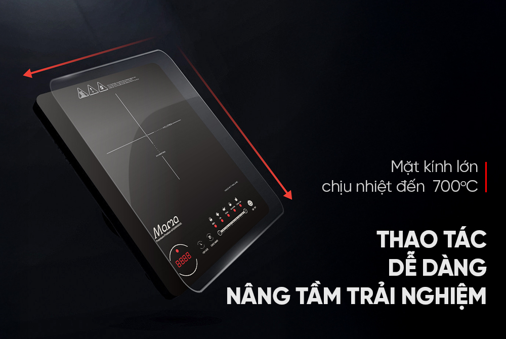 Đồng thời, diện tích mặt bếp lớn cho phép người dùng dễ dàng thao tác, vừa vặn với nhiều kích thước nồi chảo khác nhau, giúp món chín đều và tăng trải nghiệm nấu nướng.